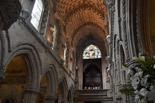 El día lo comenzamos con una excursión a Rosslyn Chapel (9£), a unos 20km de Edimburgo pero fácilmente accesible en autobús. Este precioso templo del s. XV es bastante conocido por aparecer en la película el Código DaVinci. La rica decoración de columnas, arcos, techo y vidrieras hace que nos quedemos más de una hora recorriendo cada milímetro de la capilla. Espectacular.