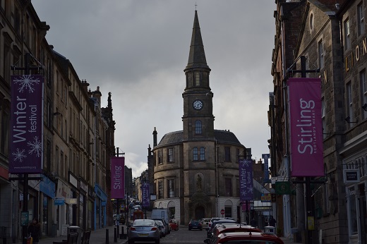 Nuestro día termina con un paseo por el centro histórico de Stirling, desde la Iglesia Holy Rude (cerrada hoy) por las calles Kings St y St John St.
