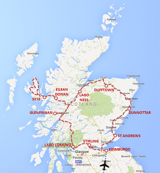 Desde la mágica ciudad de Edimburgo, recorremos la costa este de Escocia visitando St Andrews y el Castillo de Dunnottar. Visitamos una de las destilerías de whisky más famosas del país en Dufftown, para dirigirnos entonces al Lago Ness y la isla de Skye, un paisaje salvaje y lleno de contrastes donde habitan las famosas "vacas peludas". El Castillo de cuento de Eilean Donan marca el nuevo rumbo sur, que nos llevará hacia Glenfinnan y el Lago Lomond, el más grande del país. La histórica Stirling, hogar de William Wallace, pone punto final a nuestra estancia en tierras celtas.