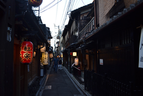 Nos dirigimos al otro lado del río para continuar nuestro paseo por Pontocho, un estrecho callejón plagado de pequeños restaurantes. Cenamos por la zona y concluimos nuestro día volviendo sobre nuestros pasos para ver Pontocho y Gion bajo la tranquilidad de la noche e iluminados por los típicos faroles rojos y blancos.