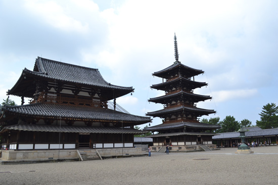 Empezamos el día en el templo Horyuji, a las afueras de Nara. Pese a ser uno de los templos más antiguos de Japón y contener los edificios de madera más viejos del mundo, no vemos mucha gente, que normalmente se quedan en los alrededores del Nara Park. Así que recorremos los pabellones y salones casi solos.