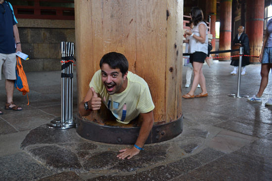 Ya en el interior Jorge decide cumplir un extraño ritual. En la base de una de las columnas hay un pequeño hueco del tamaño del agujero de la nariz del Buda. Dice la tradición que el que logre pasar por él obtendrá iluminación para la próxima vida. Con amor y longevidad ya obtenidos en el Kiyomizudera, Jorge, con mucho esfuerzo, logra pasar por el hueco y obtener otro “premio” más.