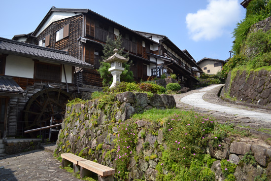 El recorrido es precioso y muy muy tranquilo, y desemboca en Tsumago, otro pueblo precioso donde ninguna casa se sale del guion medieval de la zona. Casas de madera, molinos de agua, muros de piedra… y todo en medio de bosques y rodeado de montañas.