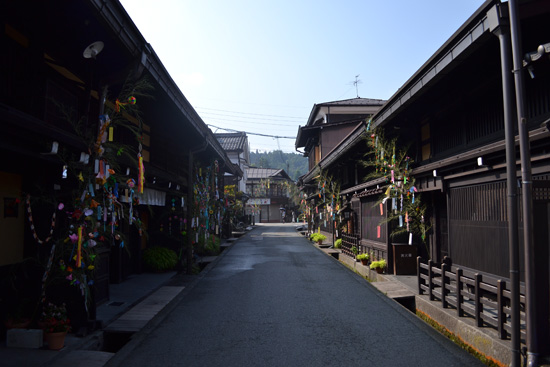 Mañana de visita por la ciudad de Takayama. Empezamos por el mercado matutino de Jinja-mae, que apenas tiene unos pocos puestos de fruta y verdura. Desde aquí, atravesando el puente Nakabashi, llegamos a la ciudad vieja. Las calles más interesantes son Ichinomachi, Ninomachi y Sannomachi, donde están las casas más antiguas de la ciudad. Pese a que las calles son bonitas, nos decepcionan un poco ya que habíamos leído que era una ciudad que merecía mucho la pena visitar y nos parece que la parte antigua de Kyoto, o los pueblos de Magome y Tsumago, conservan mucho mejor las casas, calles y el estilo tradicional.