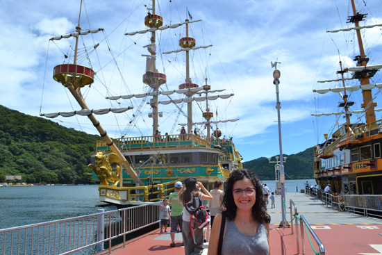 Continuamos con el teleférico que nos desciende hasta el Lago Ashinoko. Navegamos con un barco (todo incluido en el Hakone Frepass) por las tranquilas aguas del lago mientras vemos a lo lejos el Fuji, y ya en tierra visitamos el templo Hakone Jinja. Un bus nos regresa a Hakone Yumoto, donde cogemos el tren hasta Tokio.
