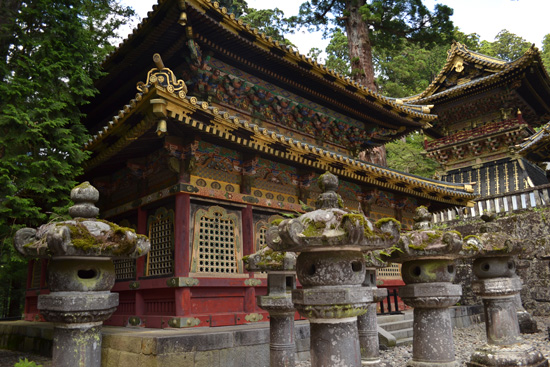 Una vez allí, cogemos un bus para acercarnos a la zona de los templos, que visitamos comenzando por el espectacular Tōshōgū. Este impresionante santuario es también mausoleo del shōgun Tokugawa Ieyasu. El enorme patio está rodeado de diferentes edificios, pagodas, almacenes, torres y templos, y sobre uno de ellos se puede contemplar el famoso grabado de los tres monos sabios. Digna de mención es la puerta Yomeimon, profusamente decorada.