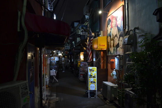 Apartado de las luces y ruidos de Kabukicho podemos encontrar el Golden Gai, una sucesión de callejuelas estrechas y oscuras y con aspecto algo turbio que están repletas de bares pequeñísimos. Y cuando decimos pequeñísimos hablamos de locales donde apenas entran 10 personas. Esta zona es conocida por su gran ambiente nocturno, pero algunos bares no dejan entrar extranjeros. Nosotros simplemente curioseamos un poco y damos una vuelta, para regresar a las calles más bulliciosas, donde cenamos.
