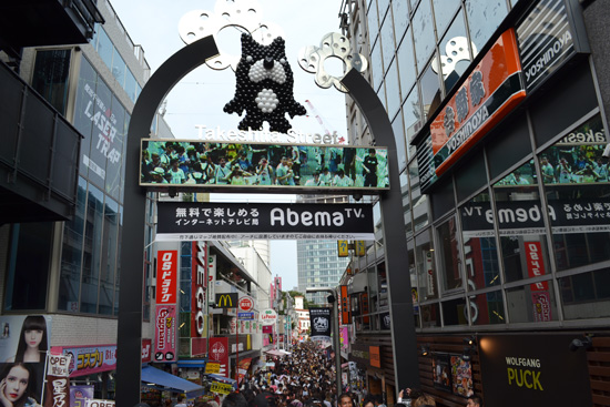 En el otro extremo del parque comienza Takeshita Dori, una calle estrecha y peatonal llena de tiendas de moda, cafeterías y, como no podía ser de otra forma, gente. Tanto que nos cuesta mucho avanzar entre los pequeños comercios de ropa, demasiado hiper-moderna para nuestro gusto, de merchandising de ídolos de las adolescentes japonesas o de extrañas gominolas que, por supuesto, probamos.