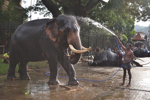 * Unas 3h antes del Festival merece mucho la pena pasearse por los jardines del Templo del Diente de Budha, se pueden ver a los que van a actuar en el mismo ensayando las acrobacias y a los cuidadores bañando y cepillando a los elefantes. Incluso puedes tocarlos.